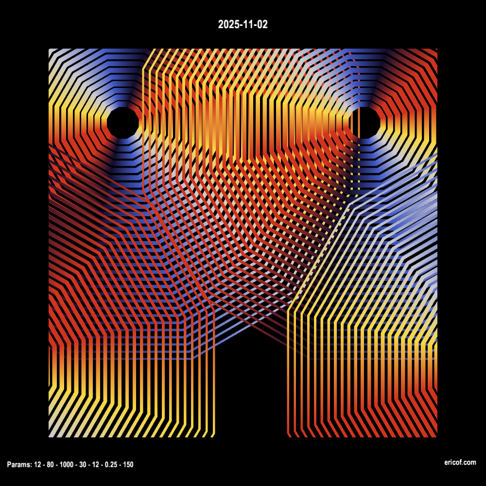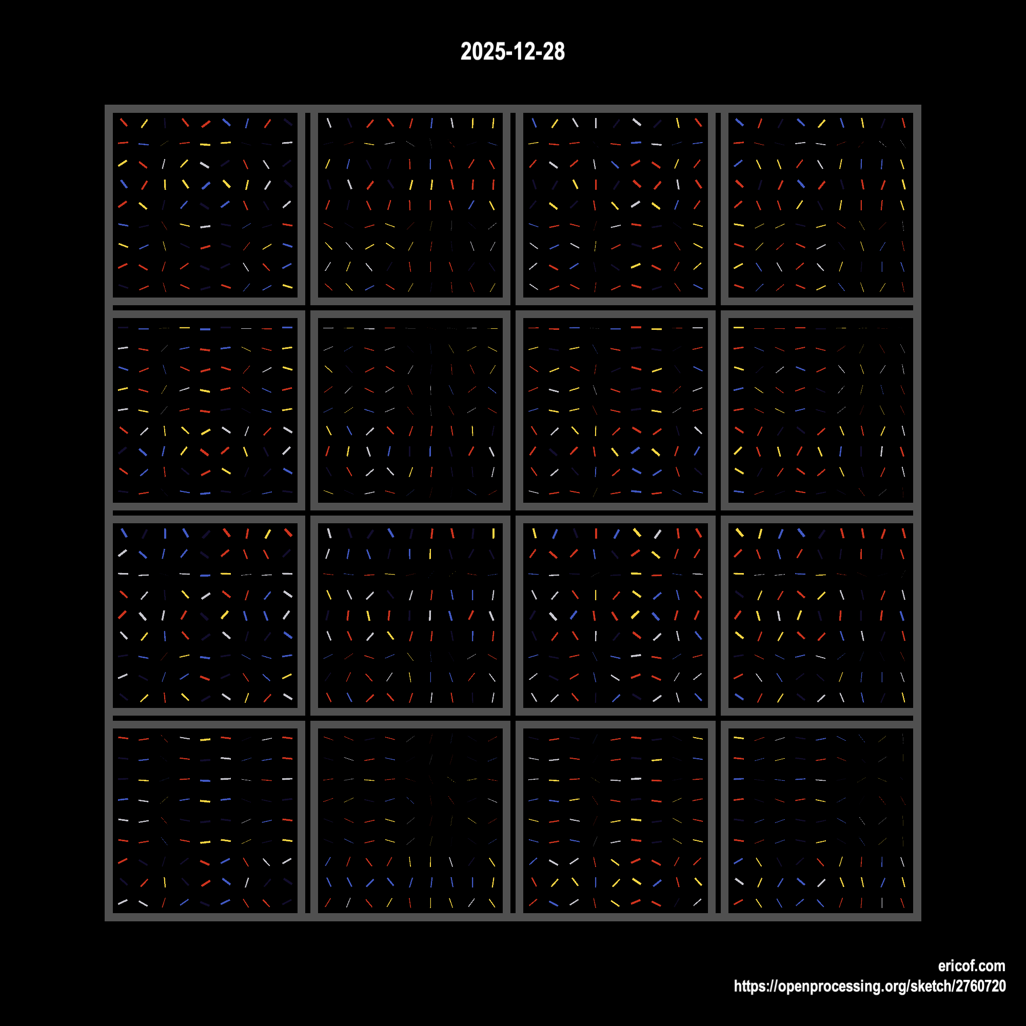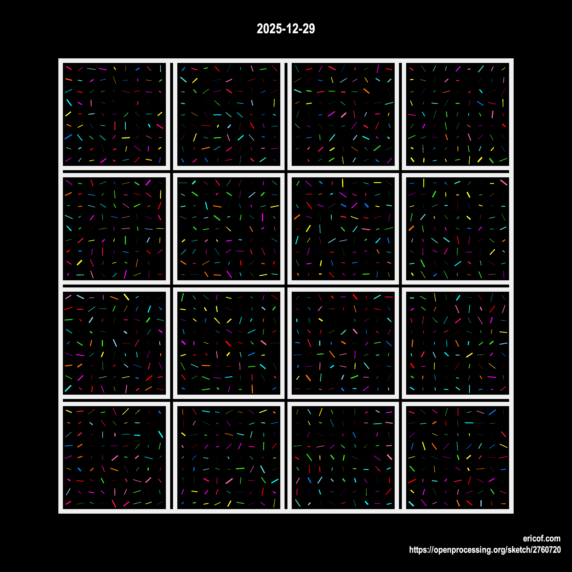Inspired by Alexandre Villares and his sketch-a-day, I have been coding sketches everyday and publishing the code here and at the github.com/ericof/sketch-a-day repository.
