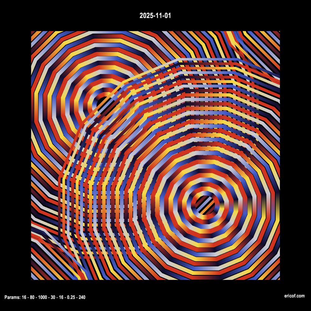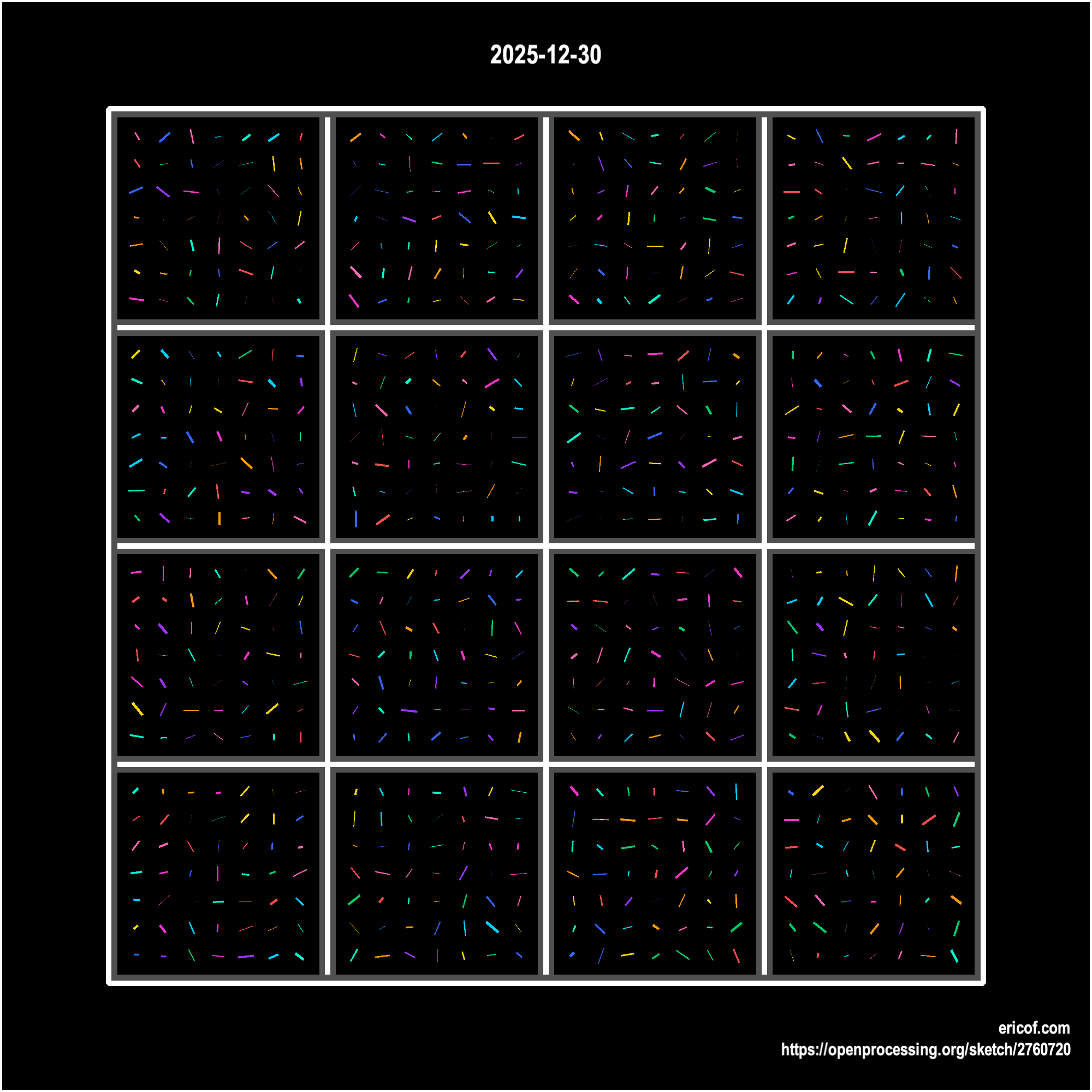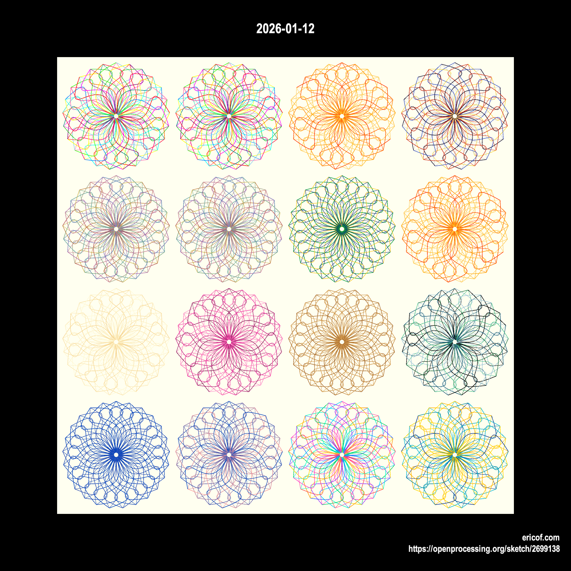 Inspired by Alexandre Villares and his sketch-a-day, I have been coding sketches everyday and publishing the code here and at the github.com/ericof/sketch-a-day repository.